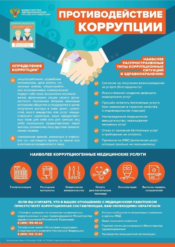 Телефон доверия по вопросам профилактики коррупционных и иных правонарушений Министерства здравоохранения Российской Федерации: